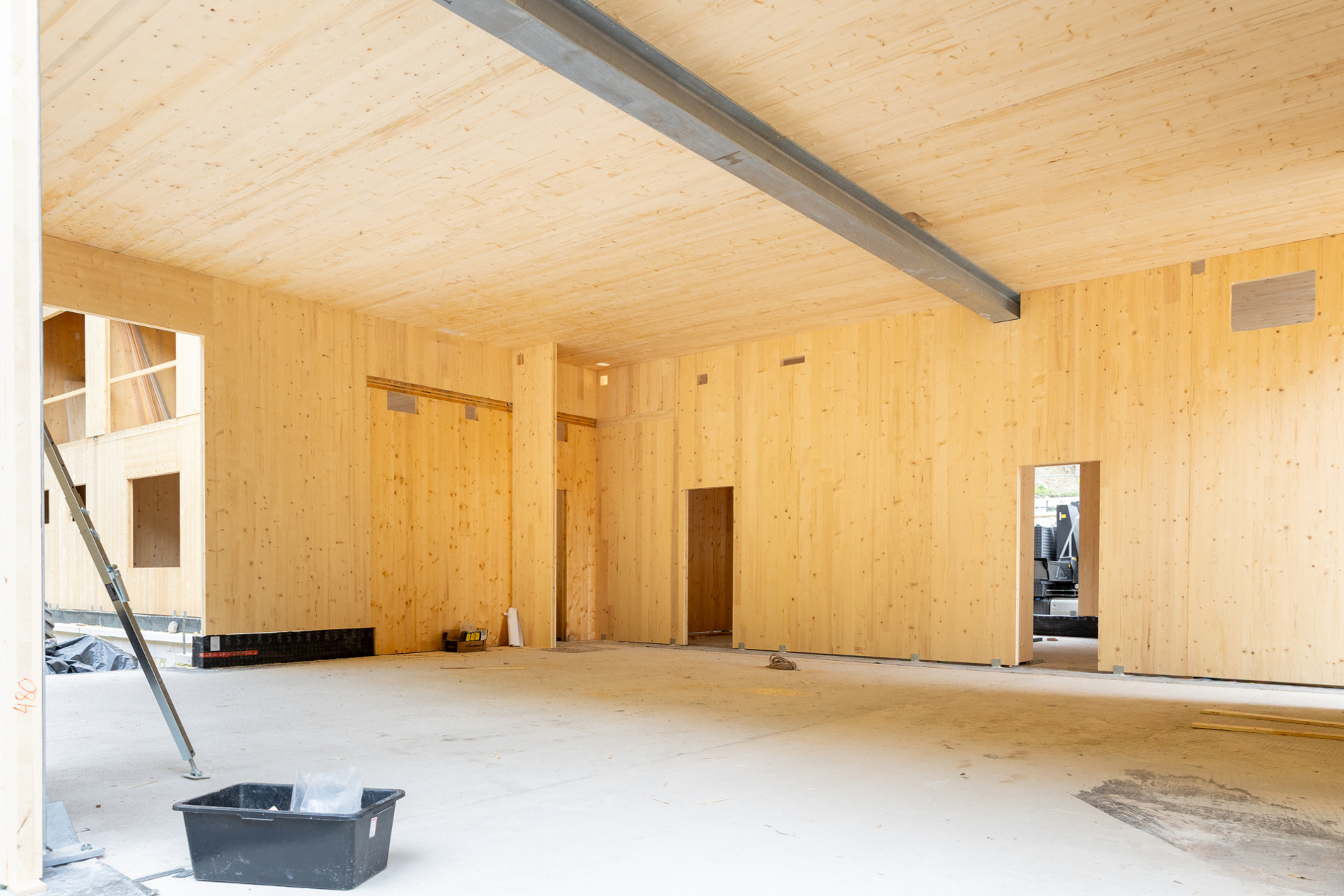 400 m3 CLT-Platten kombiniert mit einer Stahlkonstruktion werden in der modernen Anlage installiert, die für alle Liebhaber von Radfahren, Natur und aktiver Freizeitgestaltung gedacht ist. Wir führen den gesamten Bau des Gebäudes, den Dachbau sowie die meisten abschließenden Bauarbeiten und die Inneneinrichtung des Gebäudes durch.